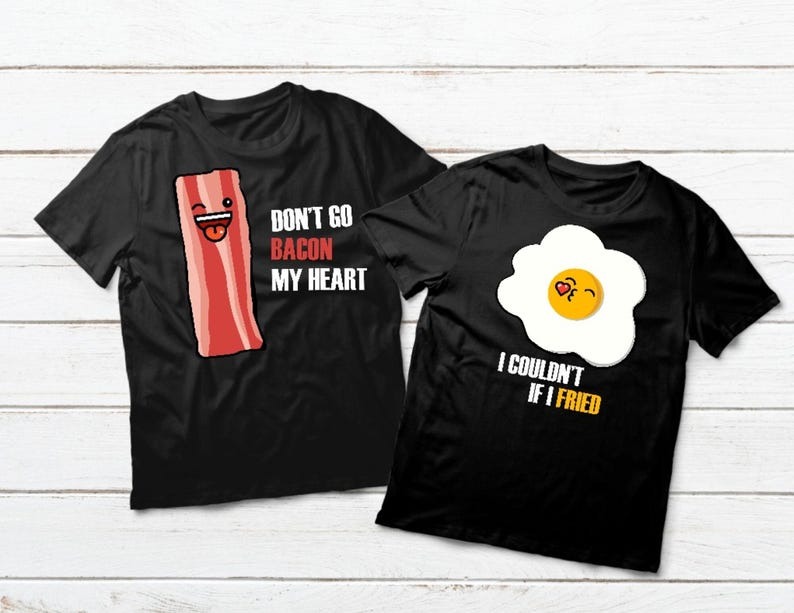 We use DTG Technology to print Don’t Go Bacon My Heart Couple T-Shirt.