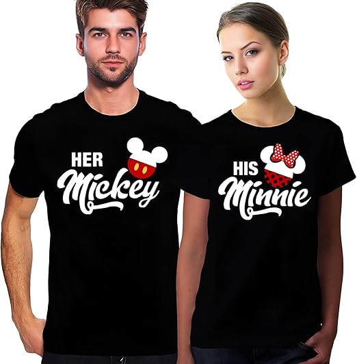 We use DTG Technology to print Her Mickey and His Minnie Matching Couples T-Shirt.