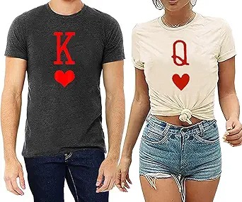 We use DTG Technology to print K and Q Hearts Couples T-Shirt.