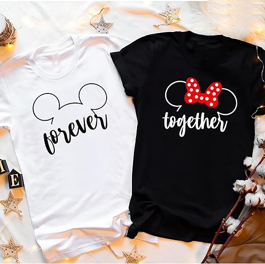 We use DTG Technology to print White and Black Mickey Head Forever Together Couples T-Shirt .